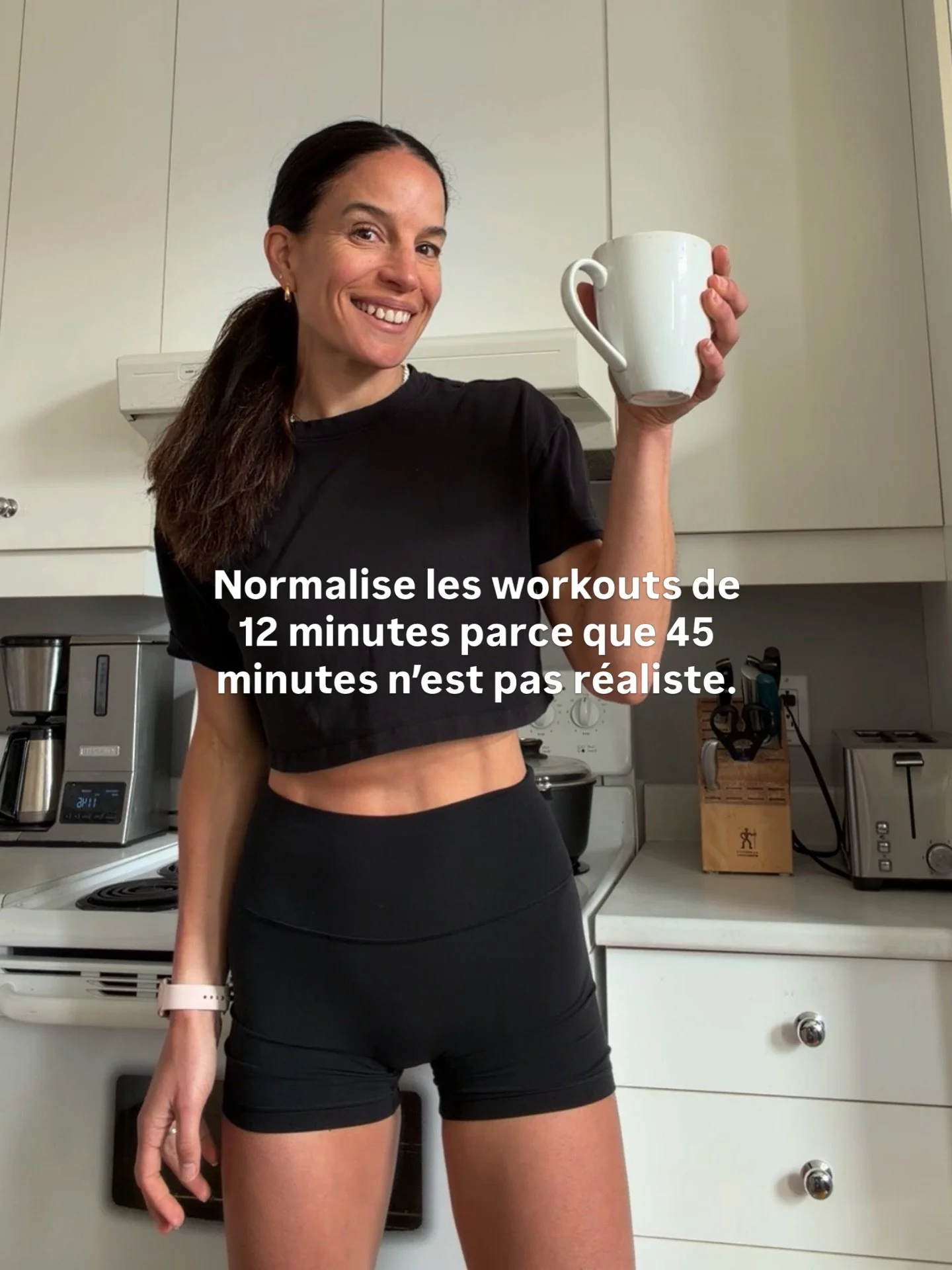 « La motivation ne vient pas toute seule. Elle se crée, un petit geste à la fois. C’est pour ça que j’ai créé la plateforme FITCAFÉ: pour t’aider à rester constante, même quand la vie est occupée. Sur la plateforme, tu retrouves des entraînements courts et efficaces, entre 12 et 18 minutes, pensés pour s’intégrer facilement à ton quotidien. Pas besoin de motivation extrême, juste d’un moment pour toi. FITCAFÉ, ce n’est pas seulement bouger. C’est créer une routine réaliste, bâtir de la discipline sans pression, et te prouver que prendre soin de toi, c’est possible — même quand tu es occupée. »